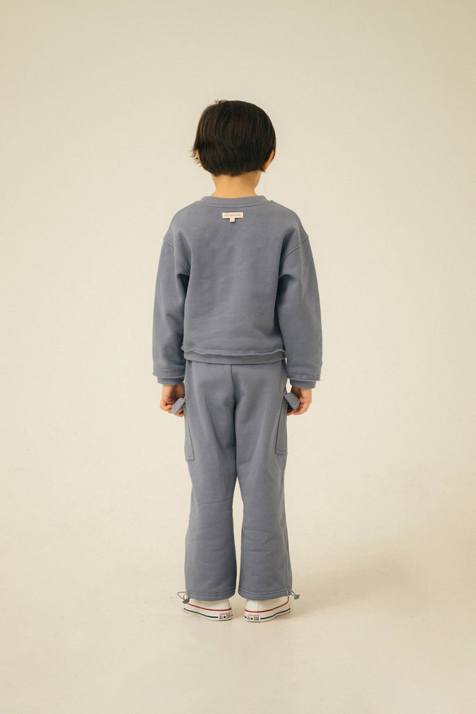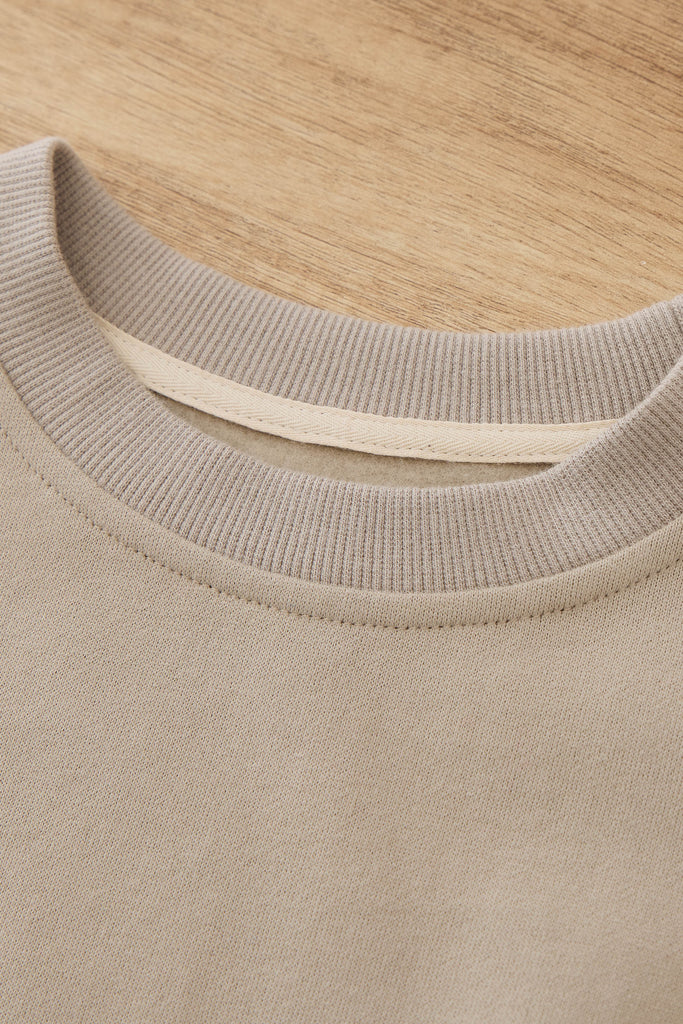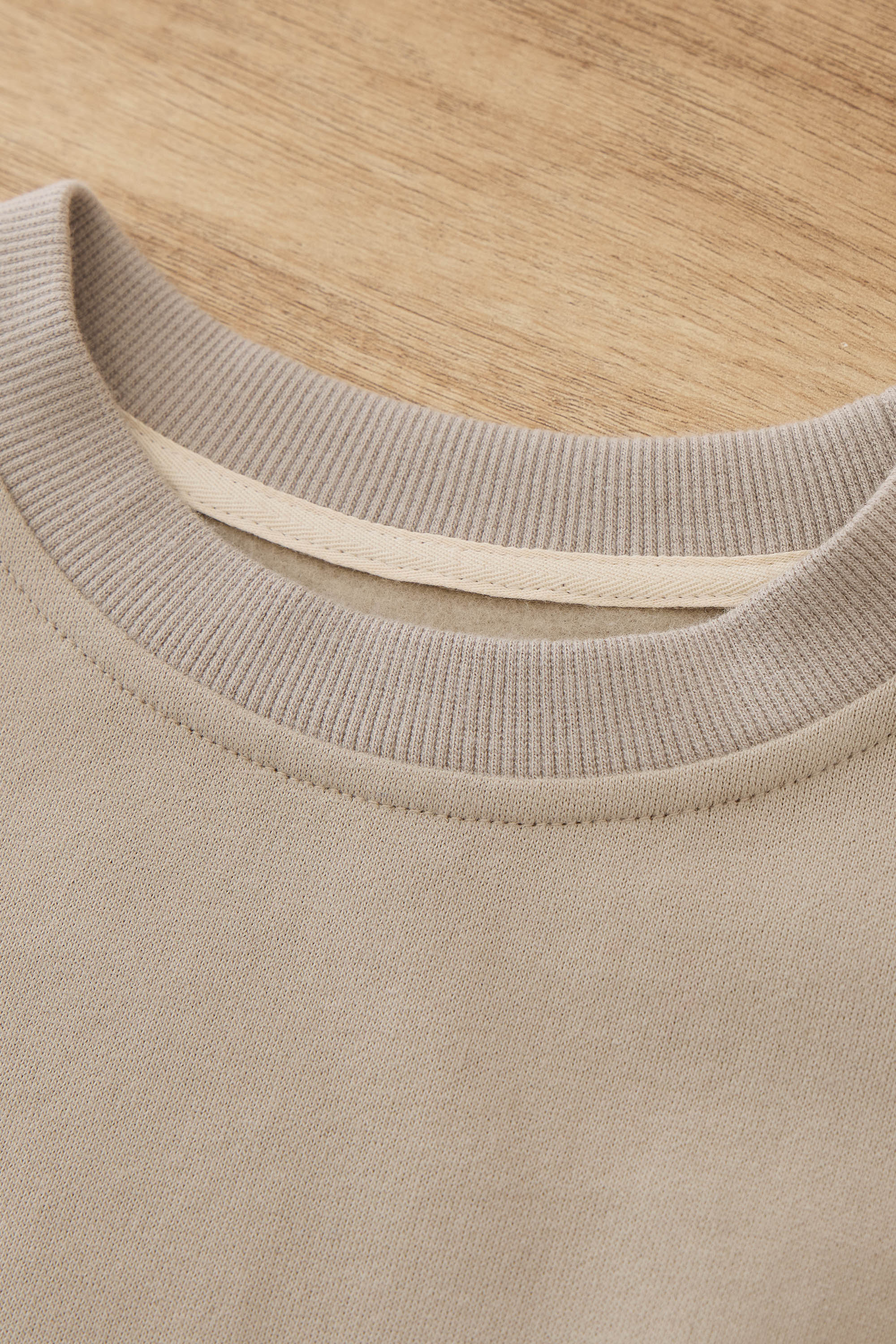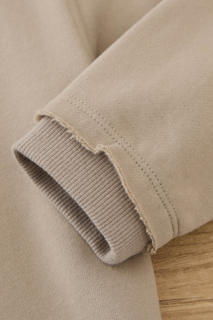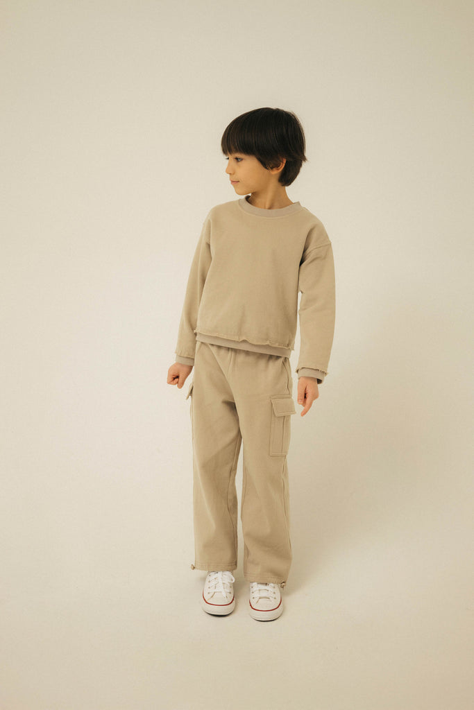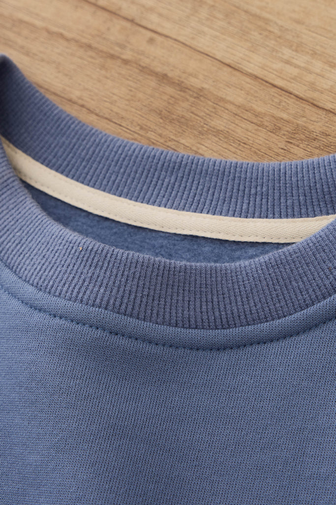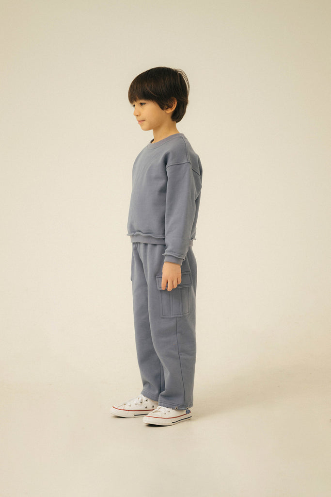 This relaxed kids sweatshirt is thoughtfully designed with a raw hem finish at the bottom that transitions smoothly into ribbing, creating a balanced mix of ease and structure that feels casual, modern, and comfortable for everyday wear. The soft fabric drapes gently on the body, making it an easy piece for children to layer over tees or wear on its own throughout the fall and winter seasons when they need a little extra warmth during school days, outdoor play, or cozy moments at home. Its simple and versatile silhouette pairs well with many outfits, allowing it to become a practical and dependable wardrobe staple for cooler weather. Crafted from 100 percent GOTS certified premium Organic Cotton, this sweatshirt reflects a thoughtful approach to environmental and social responsibility. The cotton is grown without toxic pesticides or synthetic fertilizers, resulting in a fabric that feels gentle and safe on children’s skin.