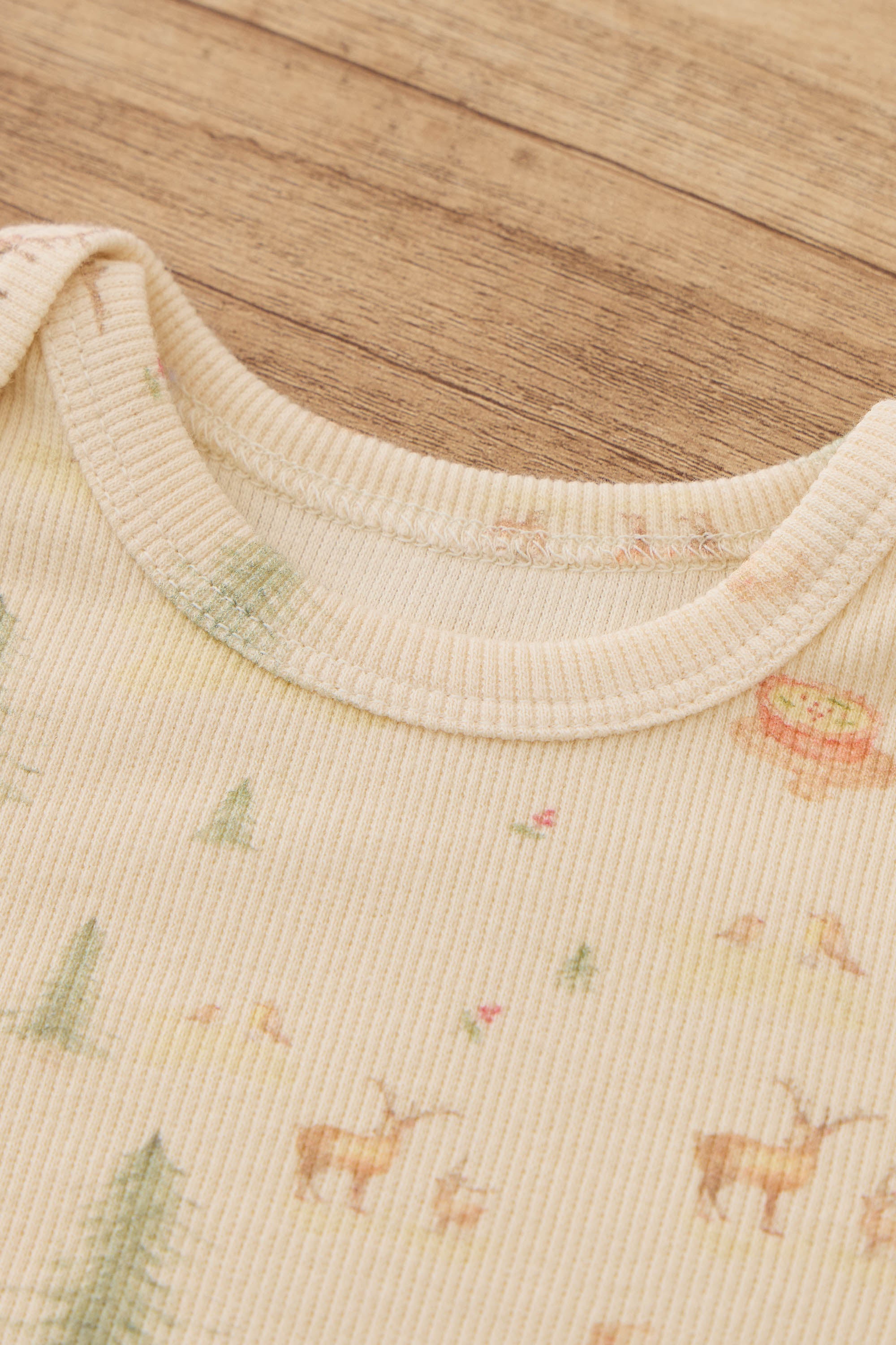 Long Sleeve Ribbed Bodysuit - Christmas Print