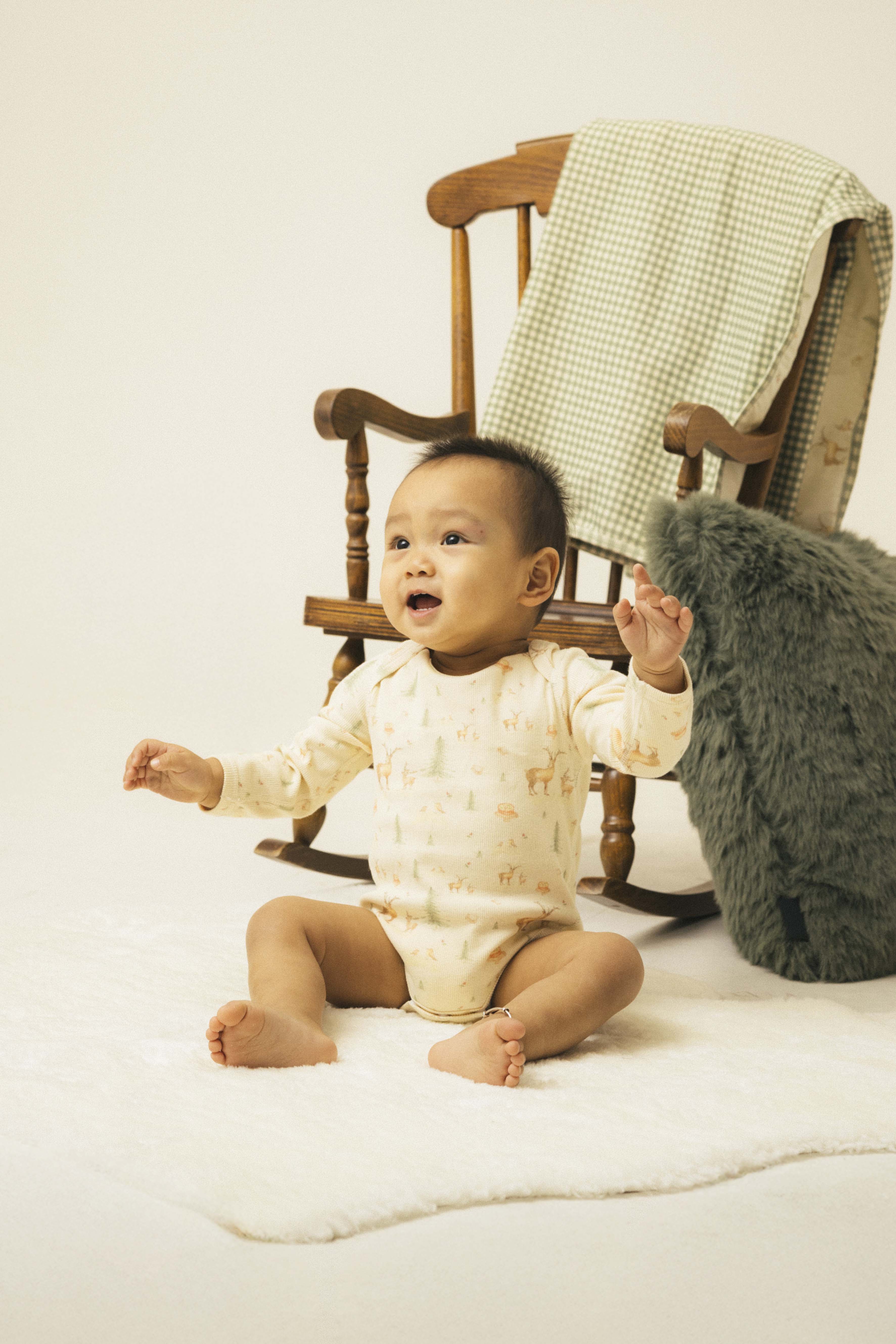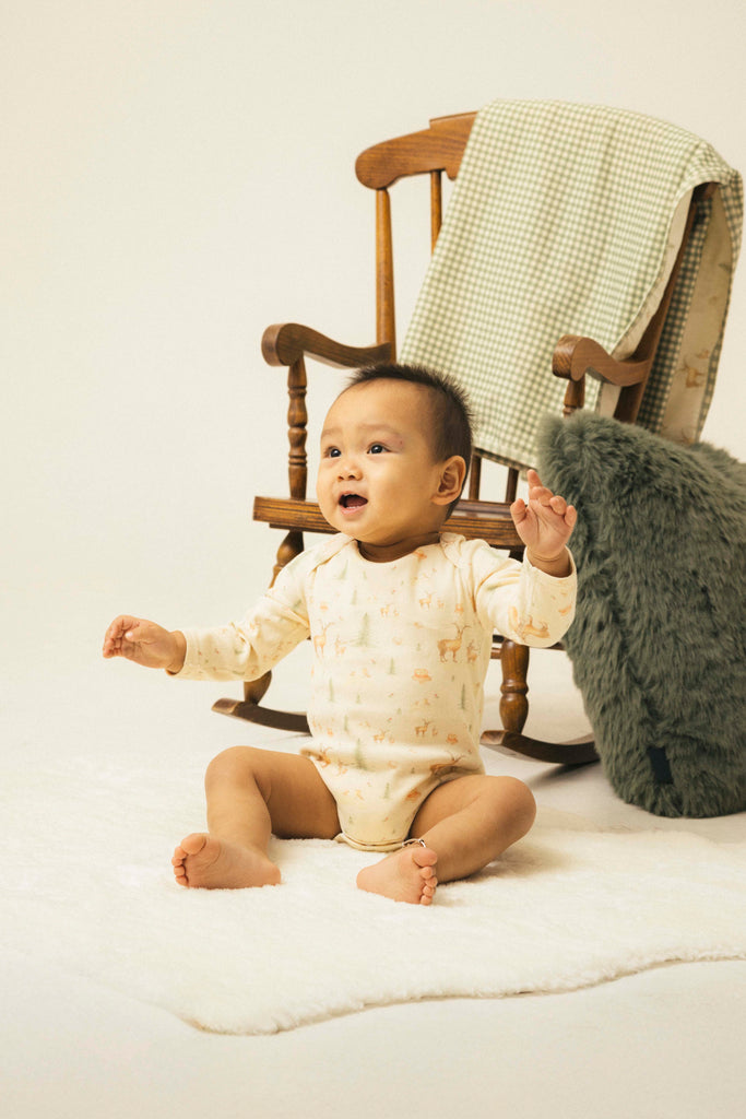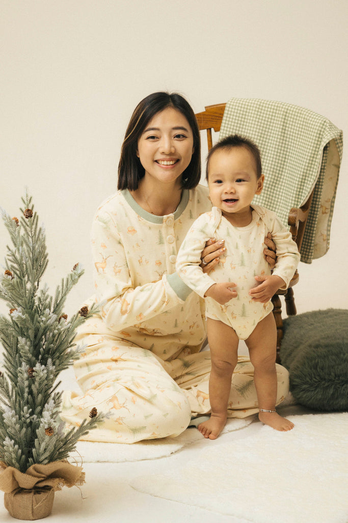 This long-sleeve bodysuit features an envelope neck for easy over-the-head dressing, with strong snap fasteners at the gusset, keep up with repeating to get change and wash. Our founder believes we are all the Santa Claus of our children’s childhoods. For kids, Christmas is filled with joyful memories. They write letters to Santa, leave milk and carrots for the reindeer on Christmas Eve, and wake up at dawn on the 25th to see if their wishes come true. These little moments fill their hearts with magic and excitement, inspiring them to dream bigger and work harder in the coming year. Family games around the tree, bursts of laughter, and the warmth of being together teach kids what love, hope, and kindness feel like. One day, they will pass that same love and warmth on to others.