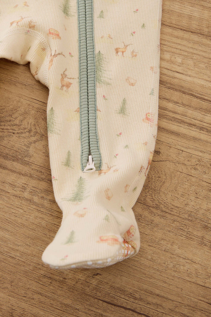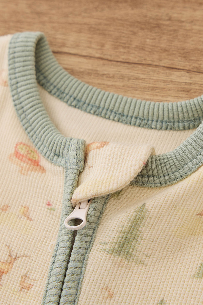 Long Sleeve Ribbed Footie Romper - Christmas Print