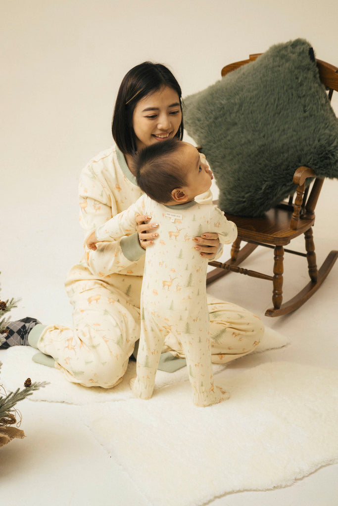 Our signature sleeping romper is designed for ultimate comfort. Featuring footies and a full-length zipper from the center front to the feet, this romper makes bedtime and changing a breeze. The soft, breathable fabric ensures a snug, cozy fit for peaceful sleep. Our company founder believes we are all the Santa Claus of our children’s childhoods. For kids, Christmas is filled with joyful memories. They write letters to Santa, leave milk and carrots for the reindeer on Christmas Eve, and wake up at dawn on the 25th to see if their wishes come true. These little moments fill their hearts with magic and excitement, inspiring them to dream bigger and work harder in the coming year. Family games around the tree, bursts of laughter, and the warmth of being together teach kids what love, hope, and kindness feel like. One day, they will pass that same love and warmth on to others.