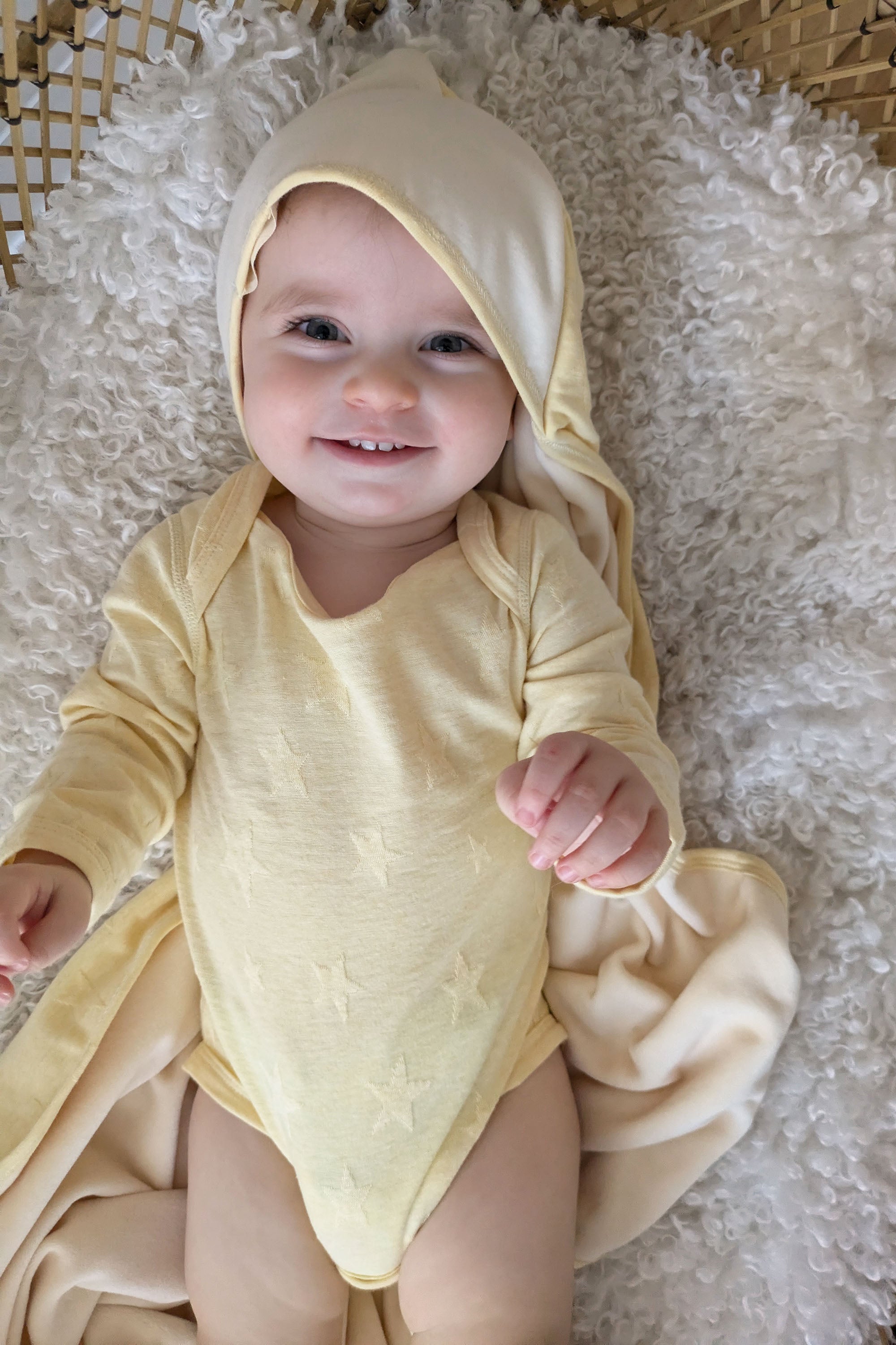 Long Sleeve Bodysuit - Yellow Star Jacquard
