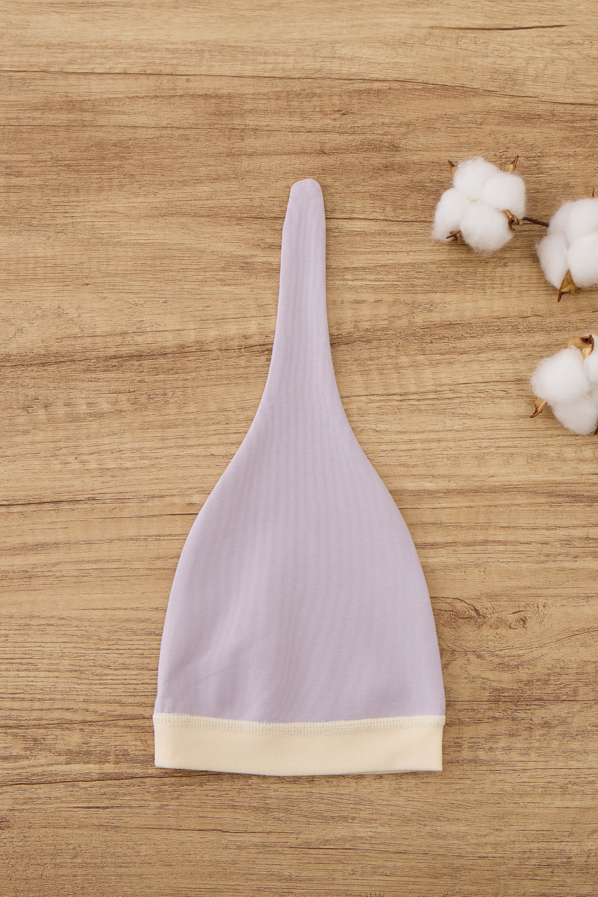 This single knot hat provides gentle warmth for baby’s head. The knot at the top adds a playful touch while allowing for a slight adjustment in length, ensuring a comfortable fit for growing little ones. Inspired by nature’s colours, this collection features muted purple and earthy brown, both created using natural dyes from plants, roots, and flowers. Combined with organic cotton, these fabrics are skin-friendly, breathable, moisture-wicking, antibacterial, anti-itch, hydrating, and UV-resistant. Naturally eco-friendly, they are ideal for sensitive skin. The art of natural dyeing lends each piece a unique, handcrafted quality while embracing sustainability. These soft, understated colours evoke a sense of warmth and connection to nature, encouraging us to slow down and appreciate its simple, pure beauty. One size for 0-6M babies.