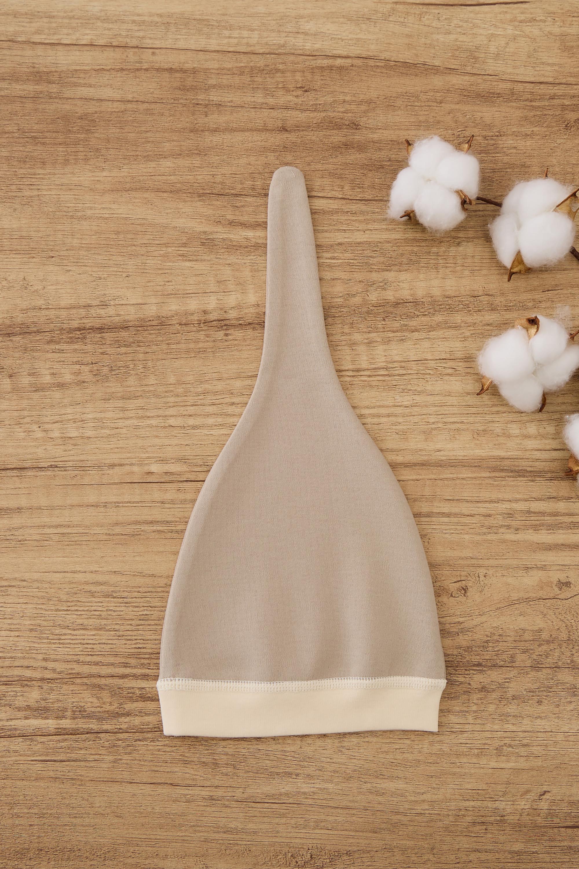 This single knot hat provides gentle warmth for baby’s head. The knot at the top adds a playful touch while allowing for a slight adjustment in length, ensuring a comfortable fit for growing little ones. Inspired by nature’s colours, this collection features muted purple and earthy brown, both created using natural dyes from plants, roots, and flowers. Combined with organic cotton, these fabrics are skin-friendly, breathable, moisture-wicking, antibacterial, anti-itch, hydrating, and UV-resistant. Naturally eco-friendly, they are ideal for sensitive skin. The art of natural dyeing lends each piece a unique, handcrafted quality while embracing sustainability. These soft, understated colours evoke a sense of warmth and connection to nature, encouraging us to slow down and appreciate its simple, pure beauty. 100% Organic Cotton. One size for 0-6M babies.
