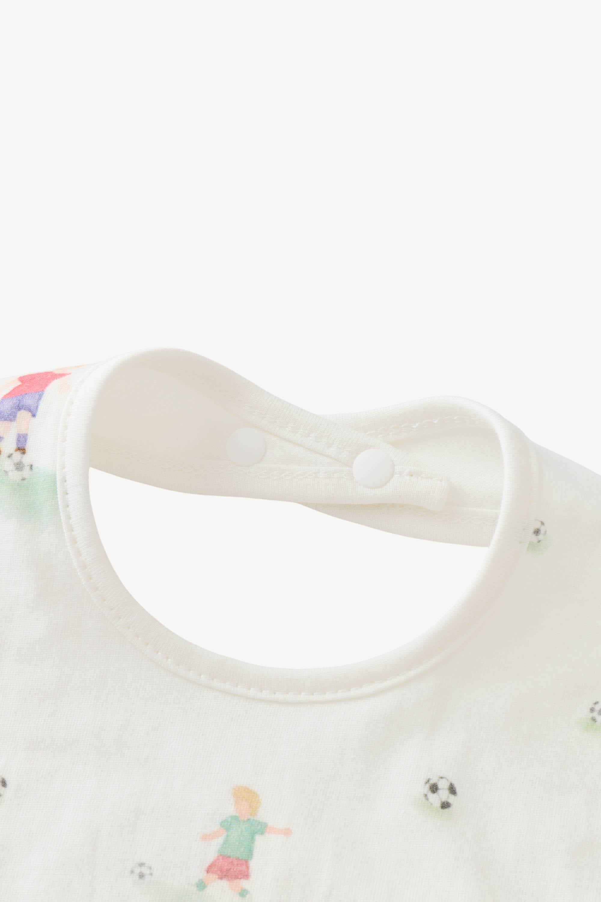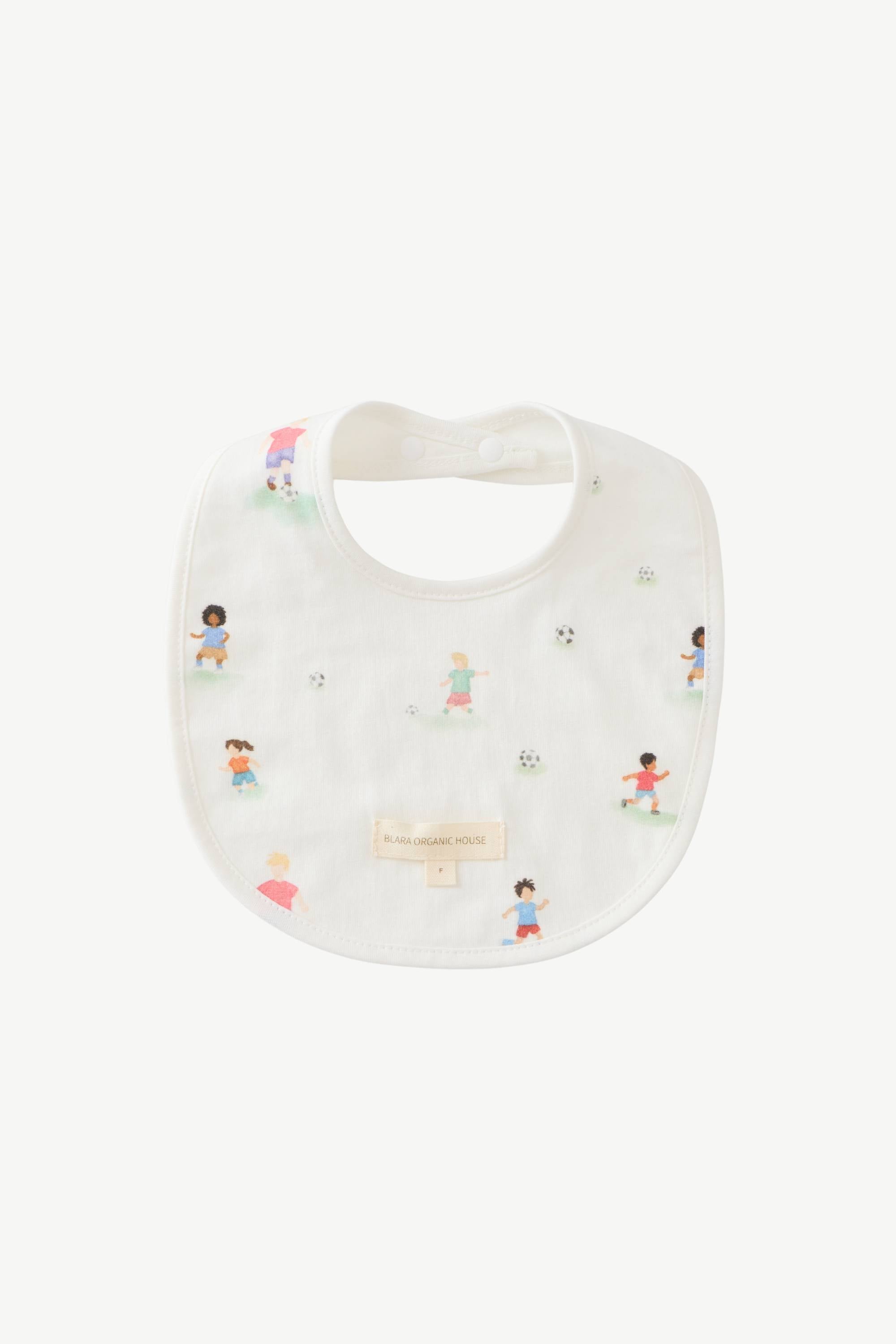 Quick-absorbing and fast-drying, this bib catches dribbles without trapping heat, so mealtimes stay mess-free and comfy. The "Mini Cup" Collection is inspired by the World Cup, celebrating the spirit of competition, teamwork, and sportsmanship. Football unites people across cultures and borders, and the founder wanted to capture this sense of team spirit for kids. This print encourages children to embrace collaboration, determination, and fair play, while fostering a sense of camaraderie and excitement, much like being part of a football team. 100% organic cotton.