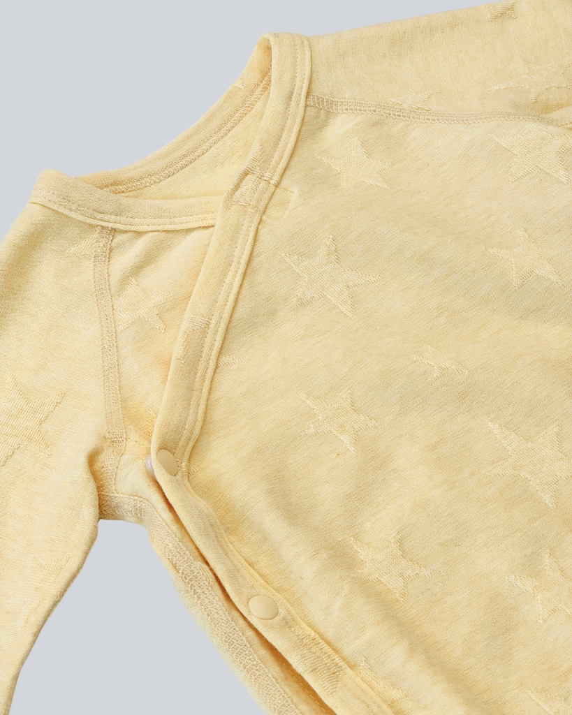 Meet the perfect basic long sleeve bodysuit for baby's wardrobe. Made from organic cotton jacquard fabric, it will feel oh-so-soft and comfortable against your little one's skin. Snap closure makes for easy changing.