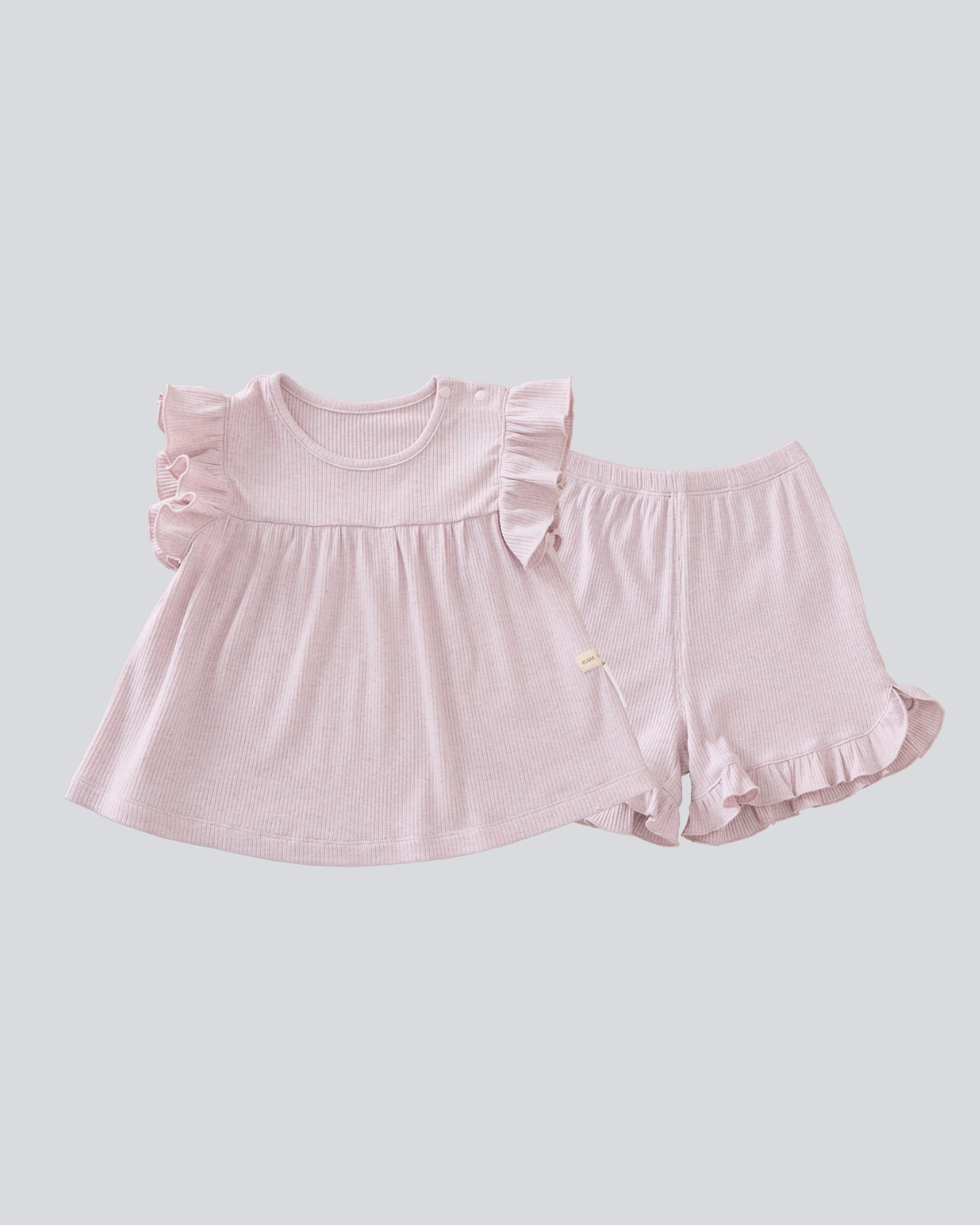 Ruffles Sleeveless Top + Ruffles Shorts (Pack of 2, top & bottom) - Smoky Purple